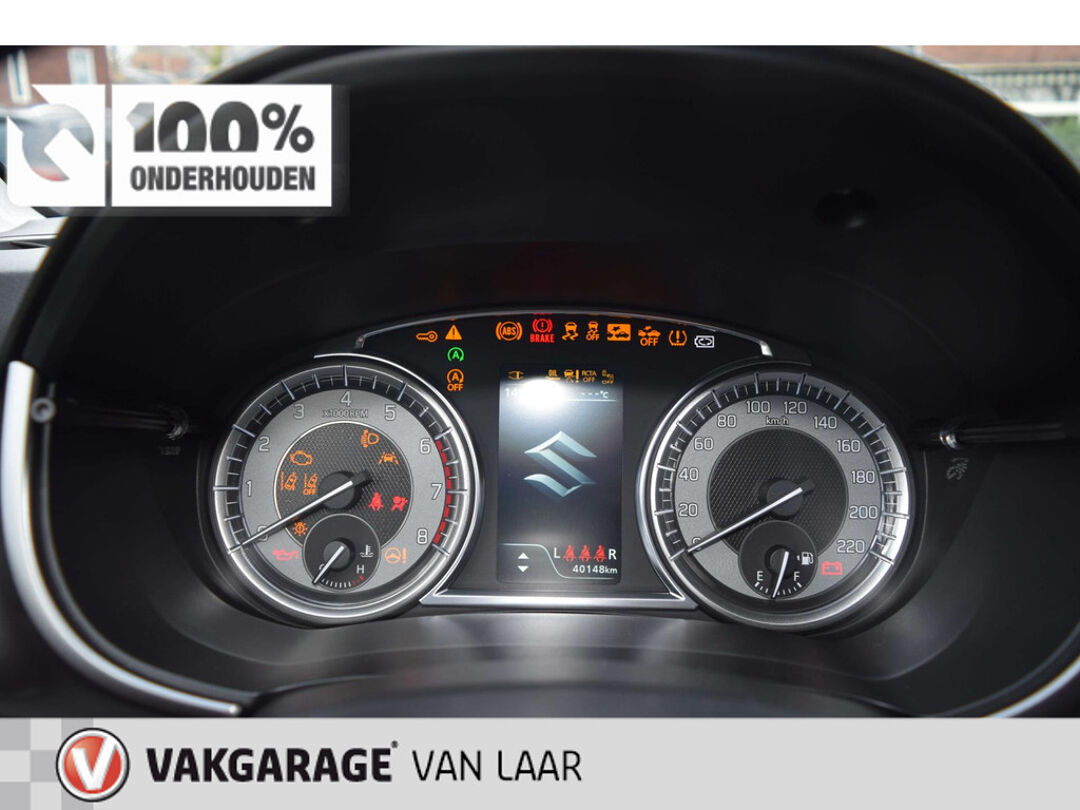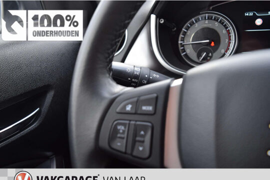 Inparkeren? Met de achteruitrijcamera heeft u er geen omkijken meer naar! Met adaptive cruise control houdt de auto zelfstandig afstand tot uw voorligger. Een veiligheidsverhogende optie waarmee u comfortabel onderweg bent. Onderweg kunt u veilig genieten van het audiosysteem met dab-radio. Want in deze Suzuki bedient u het vanaf het stuurwiel. Te weinig afstand tussen u en de achterligger? De sensoren registreren het direct en de achteropkomend verkeer waarschuwing geeft een signaal. Met electronic climate control hoeft u alleen de gewenste temperatuur in te stellen. Het systeem doet de rest. De uitrusting van deze Suzuki is met regensensor, lederen stuur, centrale deurvergrendeling met afstandsbediening, bagage afdekhoes en boordcomputer behoorlijk compleet.
